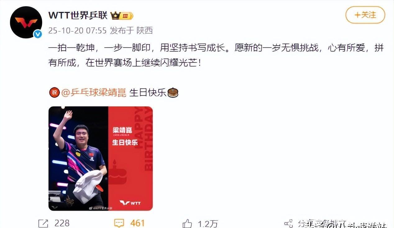 一场生日会,彰显了梁靖崑的江湖地位,樊振东的话有人信了 大家都爱叫梁靖崑“大胖”,这称呼听着亲切,跟他稳当的球风也挺配。不少人喊他“闲散王爷”,可谁知道他心里藏着股不服输的劲儿呢。 10月20号是他生日,有意思的是,马龙也这天过生日。WTT世界乒联挺会来事,给俩人都送了祝福,给大胖的那句“一拍一乾坤,一步一脚印”,可真是说到大伙儿心坎里了。要知道他一路走过来多不容易啊,总在第三的位置徘徊,好多人只看见结果,没瞧见他背后的苦。乒联还放了他俩以前对战的视频,赛场上打得那叫一个紧张,可比完赛俩人立马击掌握手,拉着一起面对观众,那股子赛场是对手、场下是兄弟的劲儿,真让人喜欢。